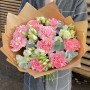 Букет из белой эустомы и розовых гвоздик в Барнауле