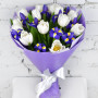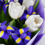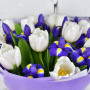Букет из синих ирисов и белых тюльпанов в Барнауле