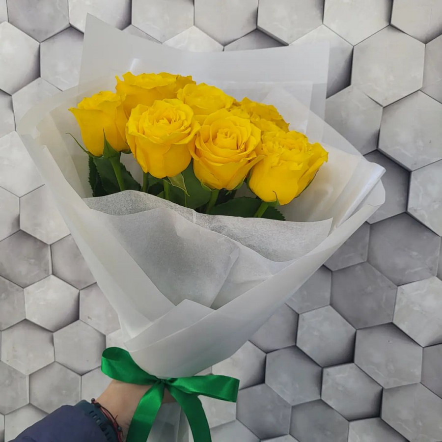 Букет из 11 жёлтых роз - это идеальный подарок для тех, кто ценит красоту и свежесть. Эти розы выращены в наших собственных теплицах и собраны в стильный букет, который будет радовать получателя своей красотой и ароматом. Мы используем только самые лучшие сорта роз, которые не только выглядят великолепно, но и имеют приятный аромат. Букет из 11 жёлтых роз станет прекрасным дополнением к любому празднику или событию.