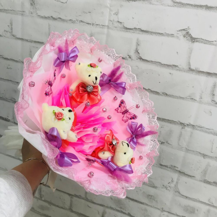 Букет из игрушек мишек и бабочек