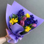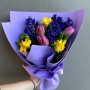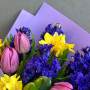 На фото букет из нарциссов и гиацинтов. В составе: гиацинт 4 шт, нарцисс 3 шт, тюльпан 3 шт, фоамиран 1 шт, атласная лента 1 шт, . Все цветы свежие и ароматные, букет красиво оформлен и отлично подходит для подарка. Доступна доставка цветов или самовывоз.