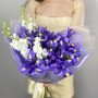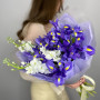 Букет из синих ирисов и белой маттиолы в Барнауле