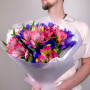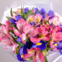 Букет из синих ирисов из розовых альстромерий в Барнауле