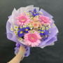 Букет из розовых гербер, ирисов и ромашек в Барнауле