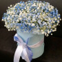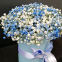 На фото голубая гипсофила в коробке. В составе: гипсофила 9 шт, шляпная коробка (s) 1 шт, атласная лента 2 шт, . Все цветы свежие и ароматные, букет красиво оформлен и отлично подходит для подарка. Доступна доставка цветов или самовывоз.