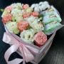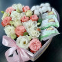 Композиция с цветами и киндерами в коробке