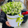На фото ландыши в шляпной коробке xl. В составе: ландыш 75 шт, шляпная коробка (xl) 1 шт, атласная лента 2 шт, . Все цветы свежие и ароматные, букет красиво оформлен и отлично подходит для подарка. Доступна доставка цветов или самовывоз.