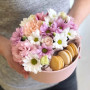Маленькая коробка с макарунами и цветами в Барнауле