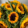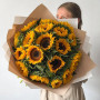 На фото монобукет из подсолнуха. В составе: подсолнух 17 шт, крафт-бумага 1 шт, атласная лента 1 шт, . Все цветы свежие и ароматные, букет красиво оформлен и отлично подходит для подарка. Доступна доставка цветов или самовывоз.