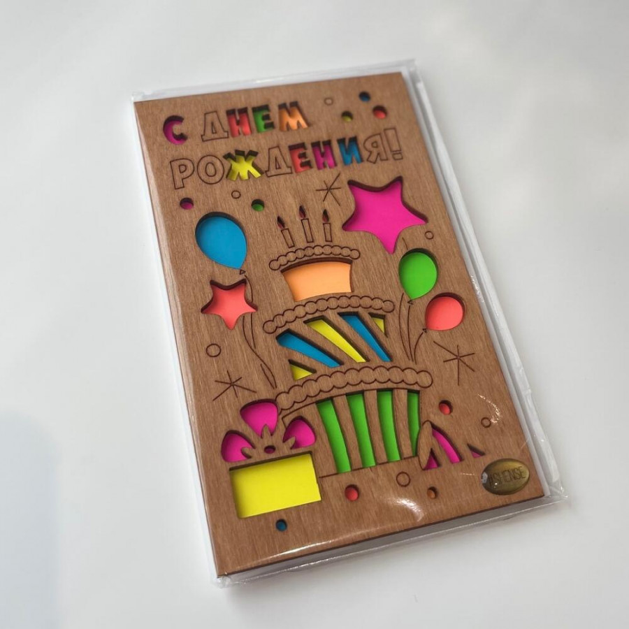 Открытка деревянная «С Днем Рождения» в Барнауле