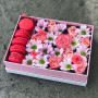 На фото сборные цветы и макаруны в коробке. В составе: макаруны 5 шт, хризантема кустовая 2 шт, кустовая пионовидная роза 3 шт, корзина (s) 1 шт, . Все цветы свежие и ароматные, букет красиво оформлен и отлично подходит для подарка. Доступна доставка цветов или самовывоз.